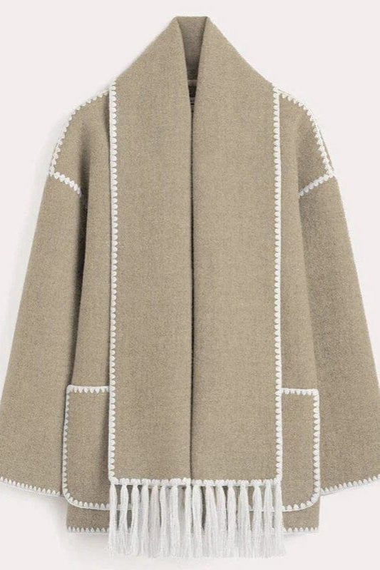 Abrigo con Bufanda de Flecos en Color Ciervo